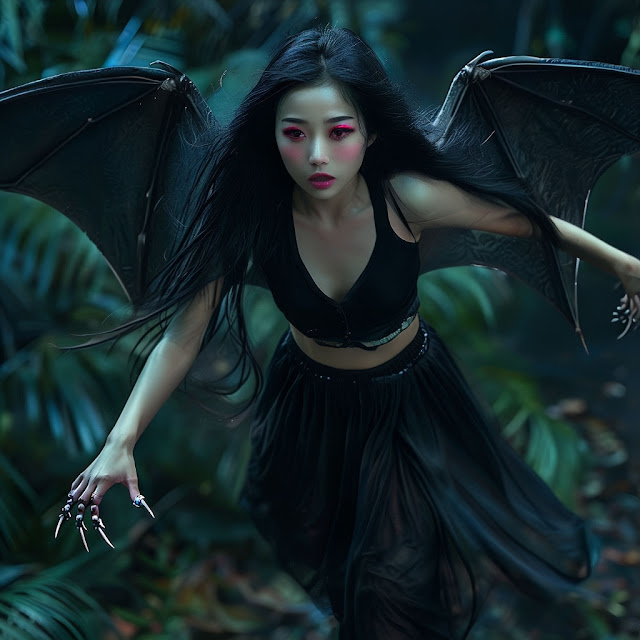 The humanoid Wak Wak closely resembles a human but has bird or bat-like wings sprouting from its back. It retains a human-like face and body but is often described as having sharp talons for hands or feet. This form is particularly unsettling because of its ability to blend in with humans during the day. The humanoid Wak Wak is more cunning and calculated than its bird-like counterpart. By day, it disguises itself as an ordinary person, hiding its monstrous wings and talons. At night, it transforms into its true form, stalking its prey and using its talons to slash and extract their hearts. The humanoid Wak Wak is more cunning and calculated than its bird-like counterpart. By day, it disguises itself as an ordinary person, hiding its wings and talons. At night, it transforms into its true form, stalking its prey and using its talons to slash and extract their hearts.